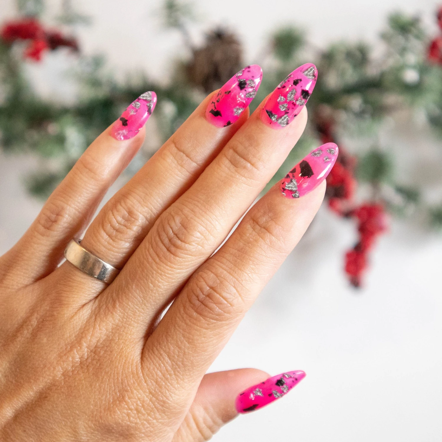 Celebrity is a sizzling hot pink nail color with big black and silver metallic flakes. Are you looking for a shade that radiates confidence, vibrancy, and undeniable star power? Celebrity is sure to make a statement and turn heads wherever you go.