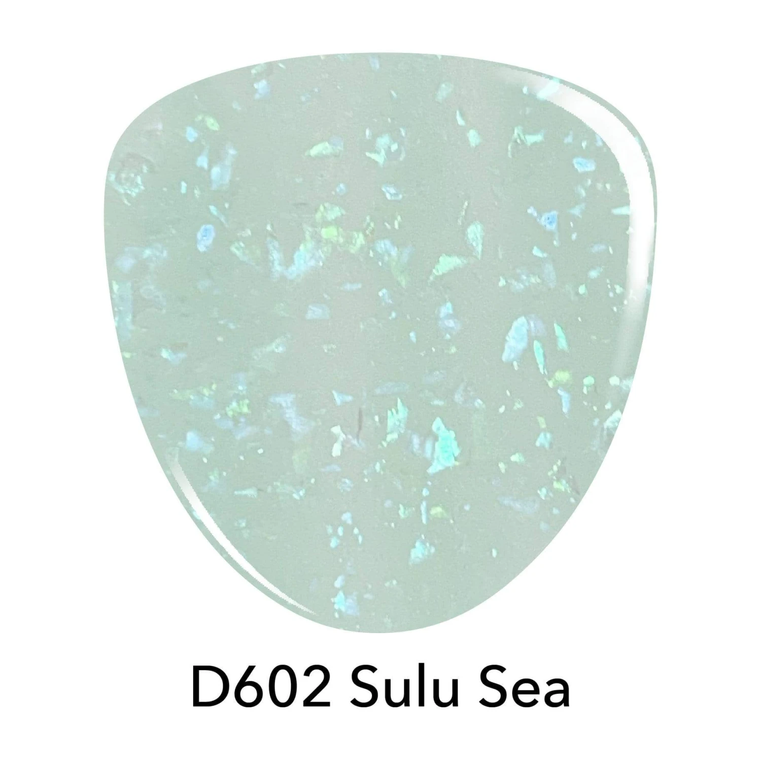 To protect Sulu Sea’s flakes, make sure to add a layer of D75 Vivien Clear as your last layer of dip powder for protection.