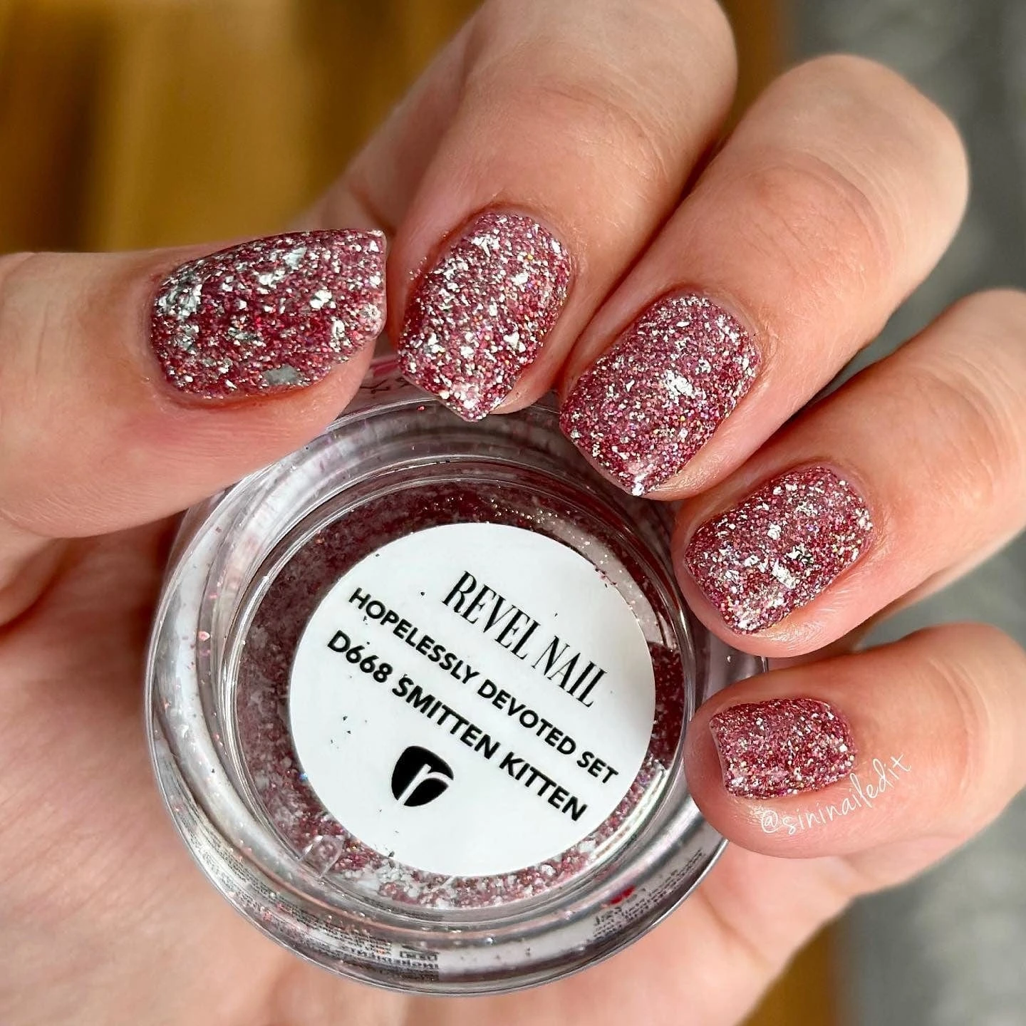 D668 Smitten Kitten is a shimmery blush pink with silver foils for those of us that are a bit more reserved with our crushes.