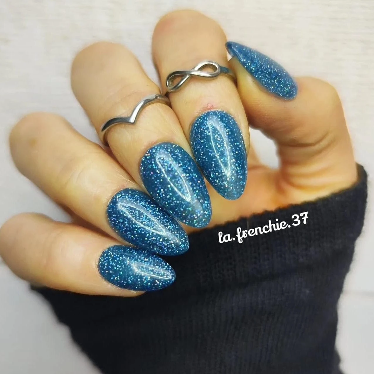 Time Out is a semi-sheer blue base with small holographic glitters. Time Out is from our Mommy and Me Messes Dip Powder Trio Set.Â