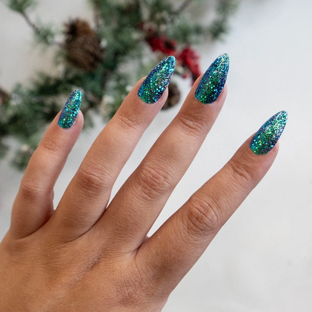 Jaded is a multi-dimensional green and blue color shifting glitter shade.