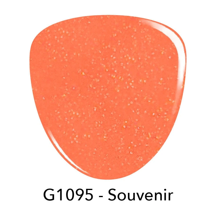 Souvenir is a orange-y coral shade that pops with gold shimmers! She is a vibrant and playful shade that evokes the energetic essence of the warmer seasons.