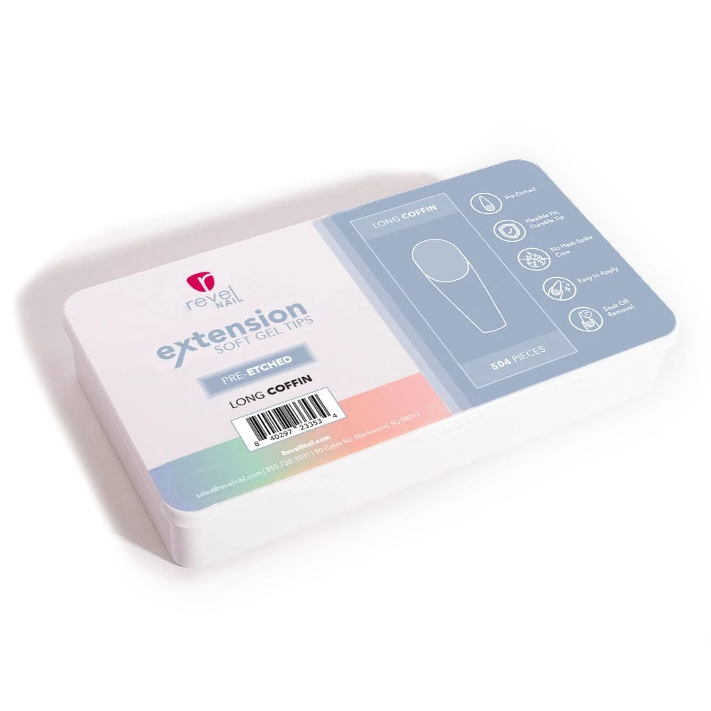 504 long coffin pre-etched soft gel tips in 10 sizes (0-9)